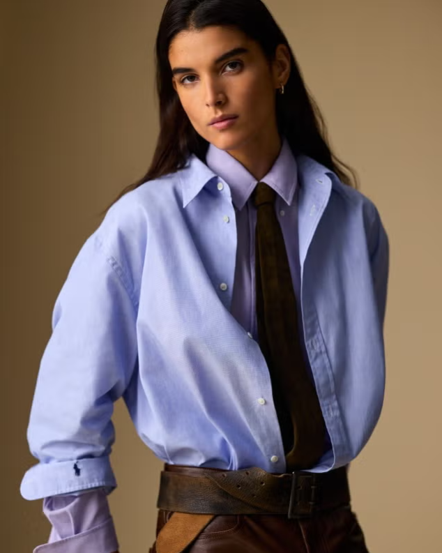 Button-up shirt sleeves and a relaxed silhouette. It’s tailored with drapey, crinkle-texture fabric that’s made from LENZING™ ECOVERO™ Viscose — responsibly sourced wood-based fibres produced through a process that reduces impact on forests, biodiversity and water supply.